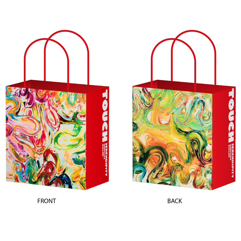 「moment!!」を両面に落とし込んだ、展覧会限定のオリジナル紙袋です。
